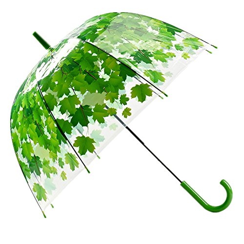 AKSSWEET Frau Regenschirm Kreative Frische PVC Transparent Pilz Grün-Blatt-Bogen-Regenschirm Kind Lange Regenschirm-Regen-Regenschirm (Grün)