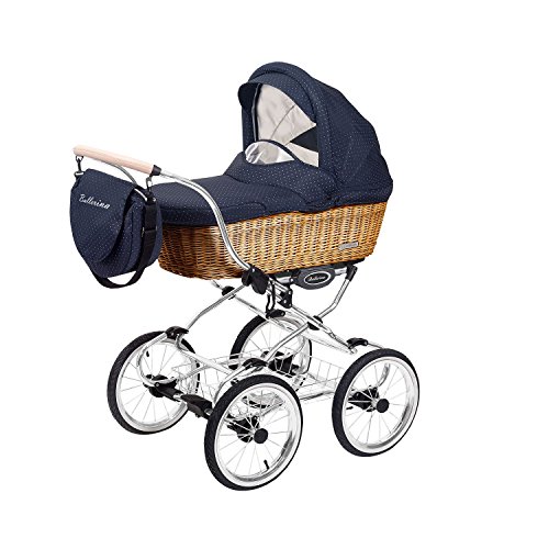 Kinderwagen Korbkinderwagen Sportwagen Ballerina Wiklina 2in1 dunkel Chromrahmen (blau W03)