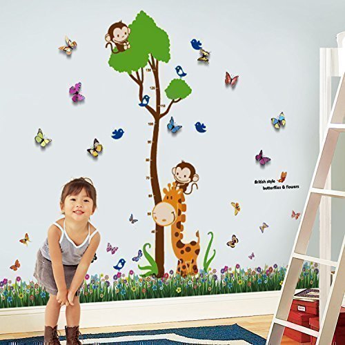 Walplus - COM Wandaufkleber Sticker Papier Kunst Kinderzimmer Dekorativ Affe Höhen Messlatte Gras Schmetterlinge 3D
