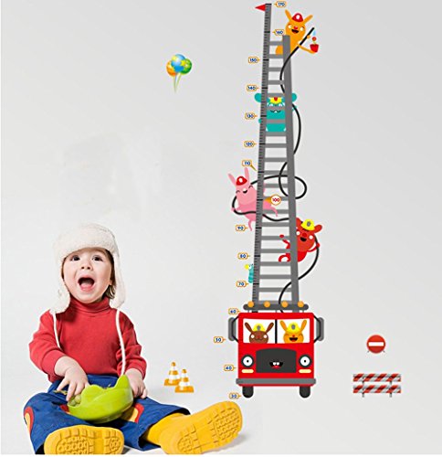 ufengke Karikatur Feuerwehrauto Feuerwehrmann Messlatten Wandsticker,Kinderzimmer Babyzimmer Entfernbare Wandtattoos Wandbilder
